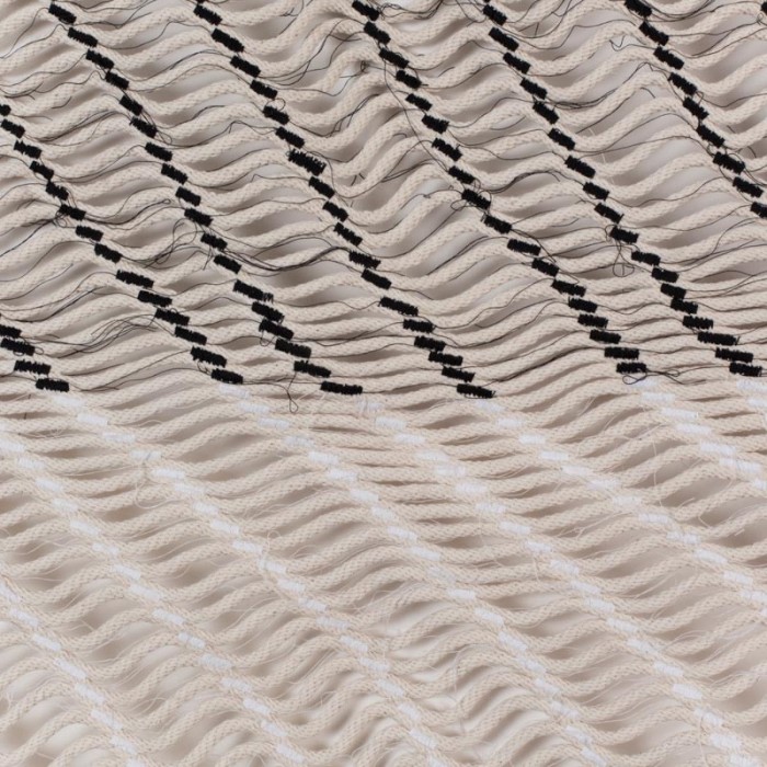 The work presented in this exhibition delves deep into the process of transforming cordage into aesthetic objects, building upon the coiling and stitching techniques I have been exploring since 2010. During that period of making baskets, bags and sculptural vessels, numerous tangential explorations were conceived that form the basis of this new body of work. The name “Brooklyn Nets” has several layers of meaning, but primarily it expresses a filtration or distillation of the ideas I have been working with since moving to Brooklyn in 2007. I have been trying to capture the essence of various facets of the process, including several actual net-type works, while maintaining a playful and improvisational spirit. It also expresses my excitement for presenting this work in my hometown while acknowledging that seven years of living in New York City has fundamentally affected my identity.